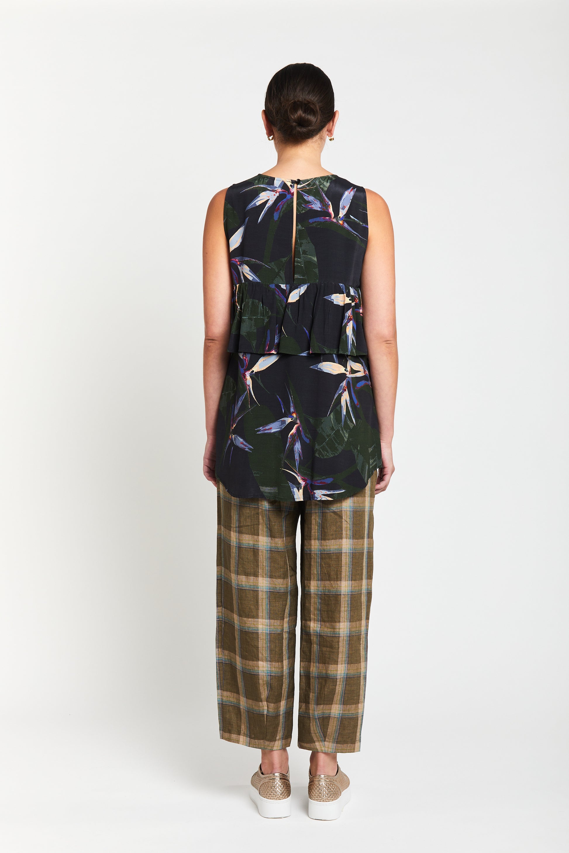 Experience the combination of style and comfort in the Dublin Devon Pant, beautifully constructed in a soft sophisticated plaid, a blend of earthy olive and warm tan, intersected with crisp lines of sky blue. This grounded palette evokes a natural, rustic charm, while the subtle blue detailing adds a refined, contemporary edge. Featuring a complementary flat front, clean topstitch detailing, pockets add everyday functionality without compromising the silhouette, a button and zip closure, the relaxed leg flows effortlessly, finishing with a clever angled design coming in gently at the ankle, creating movement and shape. With their flattering fit and thoughtful design, these pants are a must have for effortless sophistication, offering functionality and a refined sense of style
