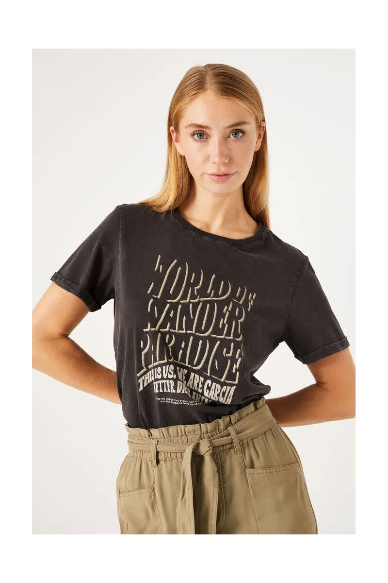 T-shirt with text print. This t-shirt is easy to match with the rest of your wardrobe. The t-shirt has a crew neck, rolled sleeves and a regular fit. This item is made of 100% cotton.