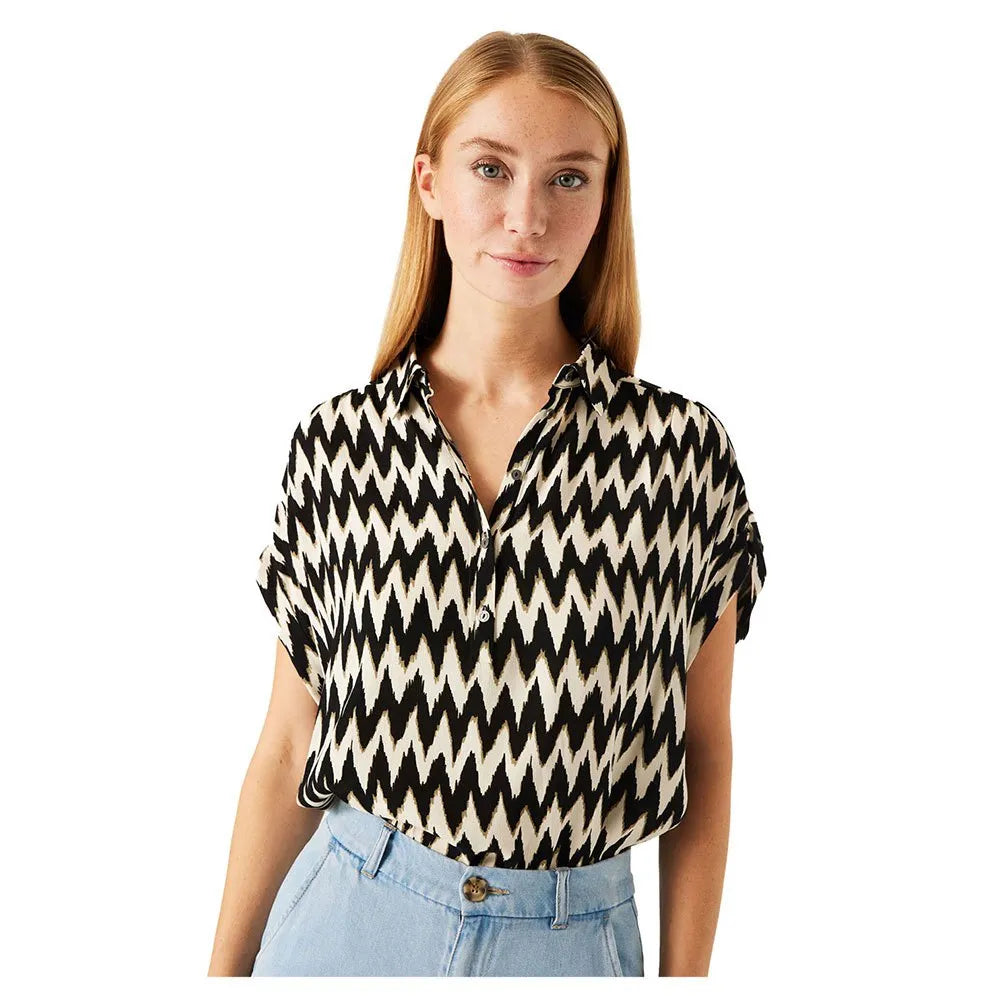 The blouse has a collar with button closure, sleeves and a regular fit.