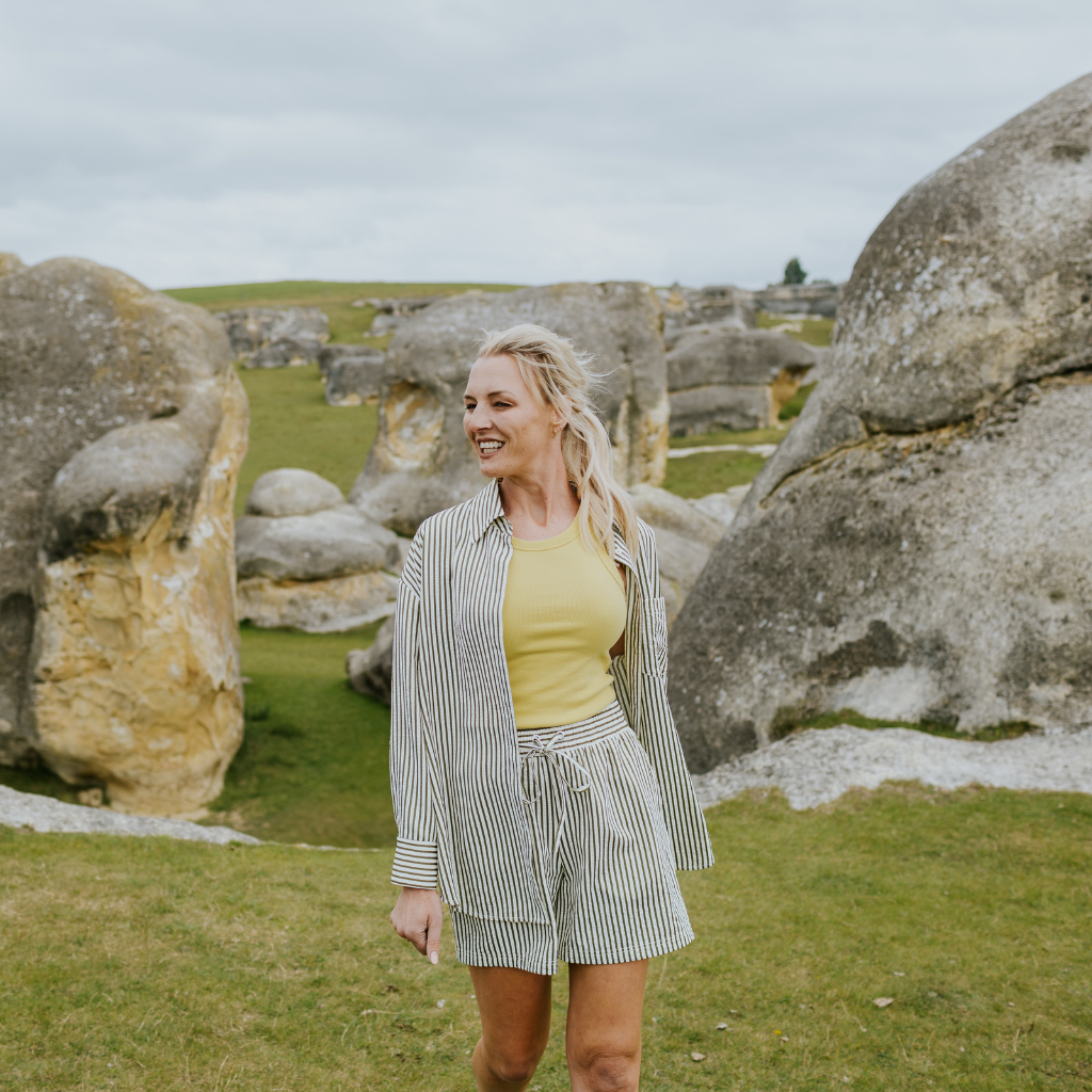 Pair the Hana Shorts with the Sassy Stripe Shirt and an Ede Tank for an effortless summer uniform that works from beach to brunch.