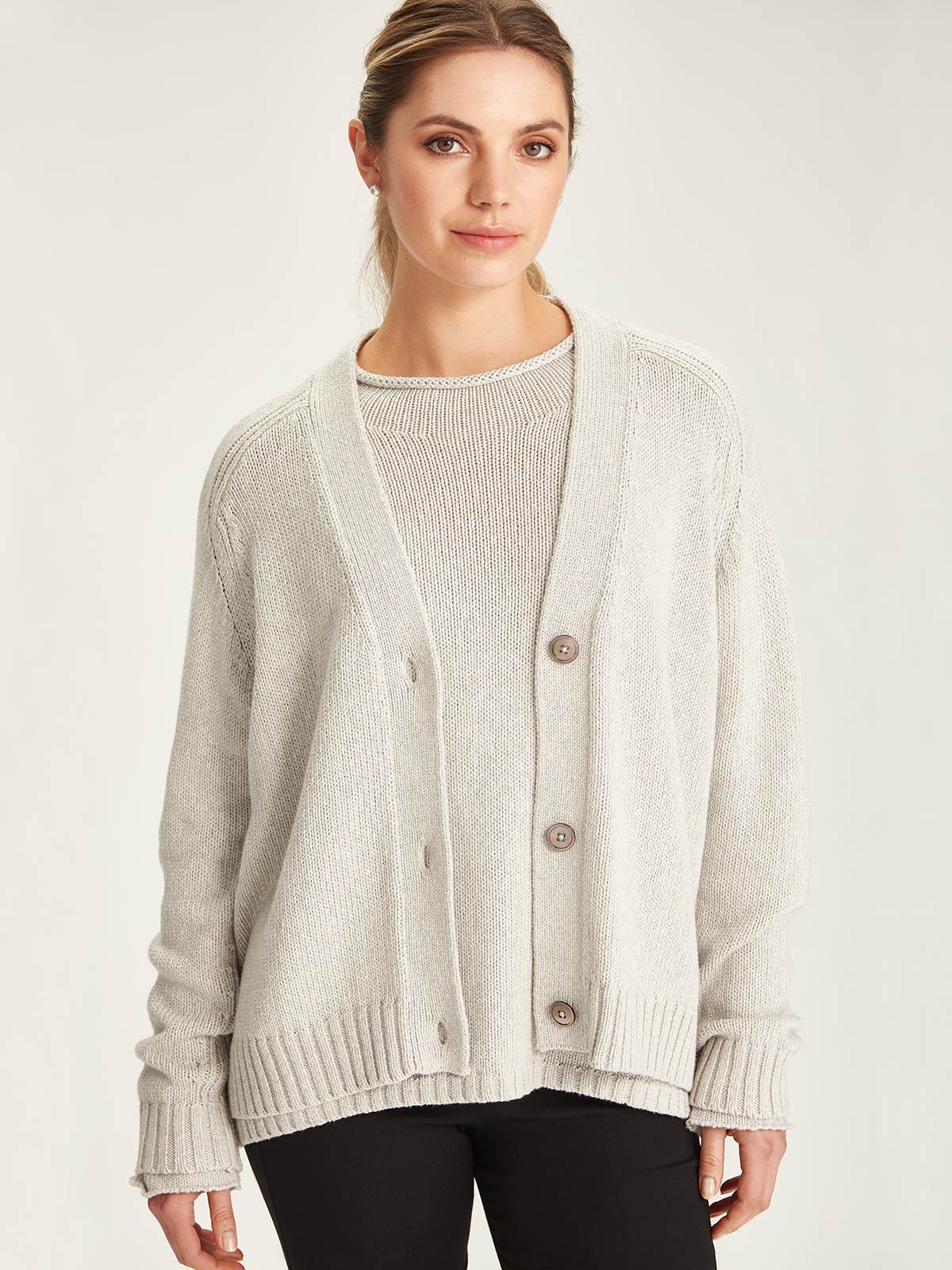 A cardigan is pivotal to a sophisticated Winter wardrobe, and the Janaya is perfect for effortless laid-back layering. Available in warm natural tones with mother-of-pearl buttons adding a touch of textbook chic. We love it layered over the AW25 Tiegan Sweater.