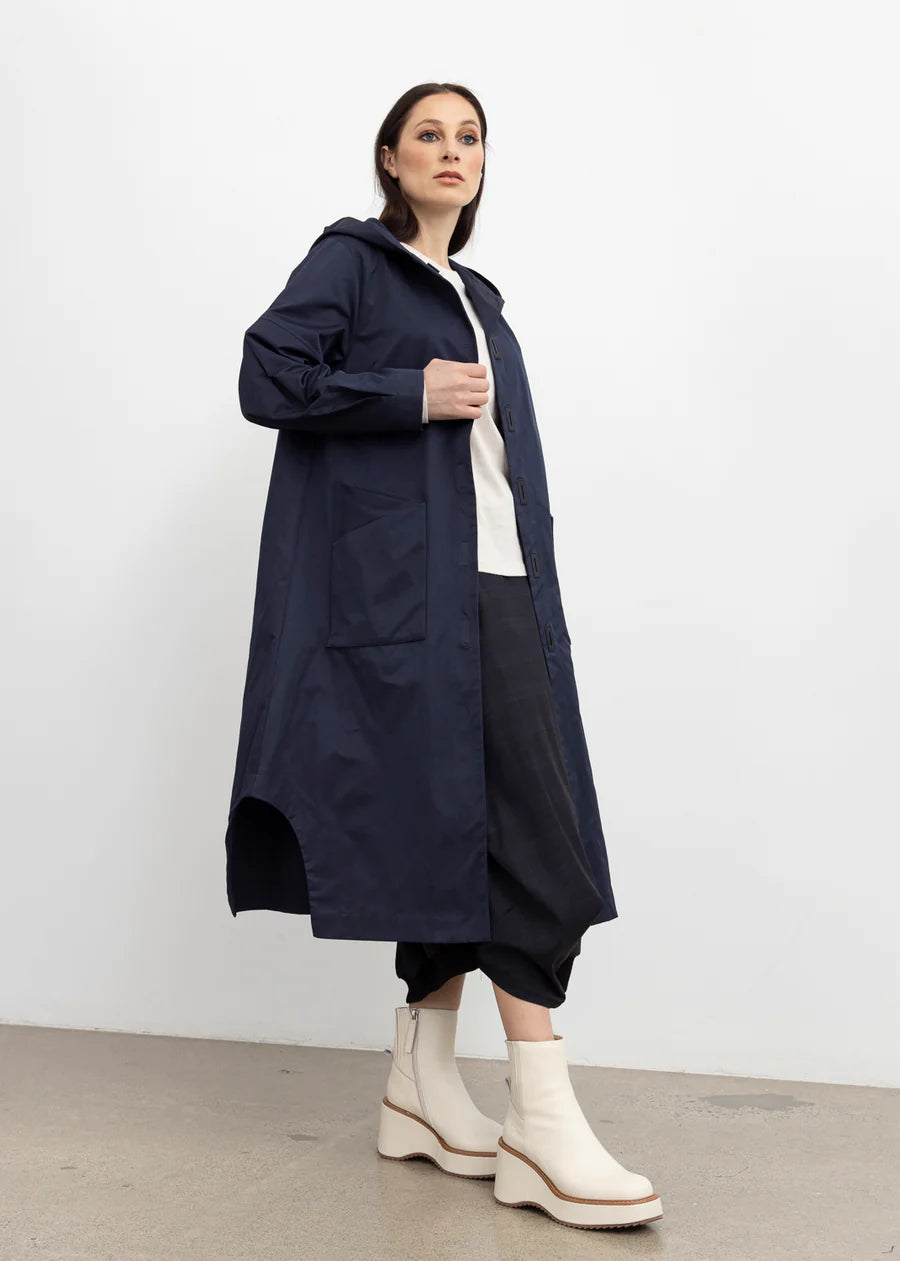 The Reflective Revel Dress is a striking hooded midi dress with a clean, minimalist silhouette and a modern edge. Crafted from structured yet comfortable fabric, it features a sharp contrast trim running vertically down the center, elongating the form. The hood adds a sporty-luxe element, while the short sleeves and side slits ensure ease of movement. Whether layered over a mesh top for a streetwear vibe or worn solo for effortless cool, this piece is a standout in both black and white colorways.