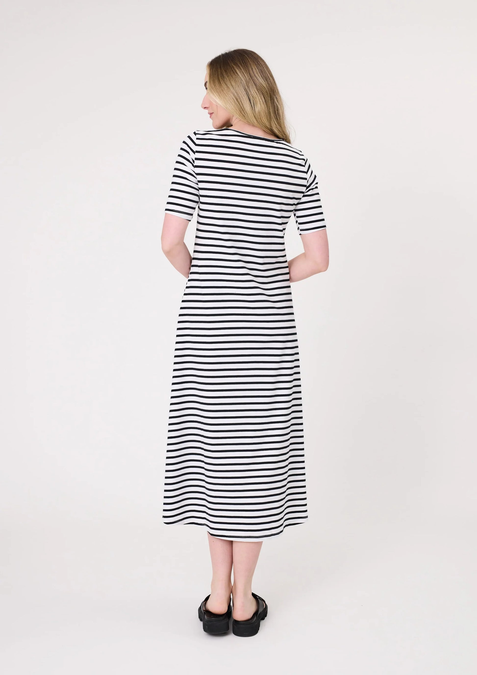 - Midi-length silhouette with short sleeves for easy everyday wear.