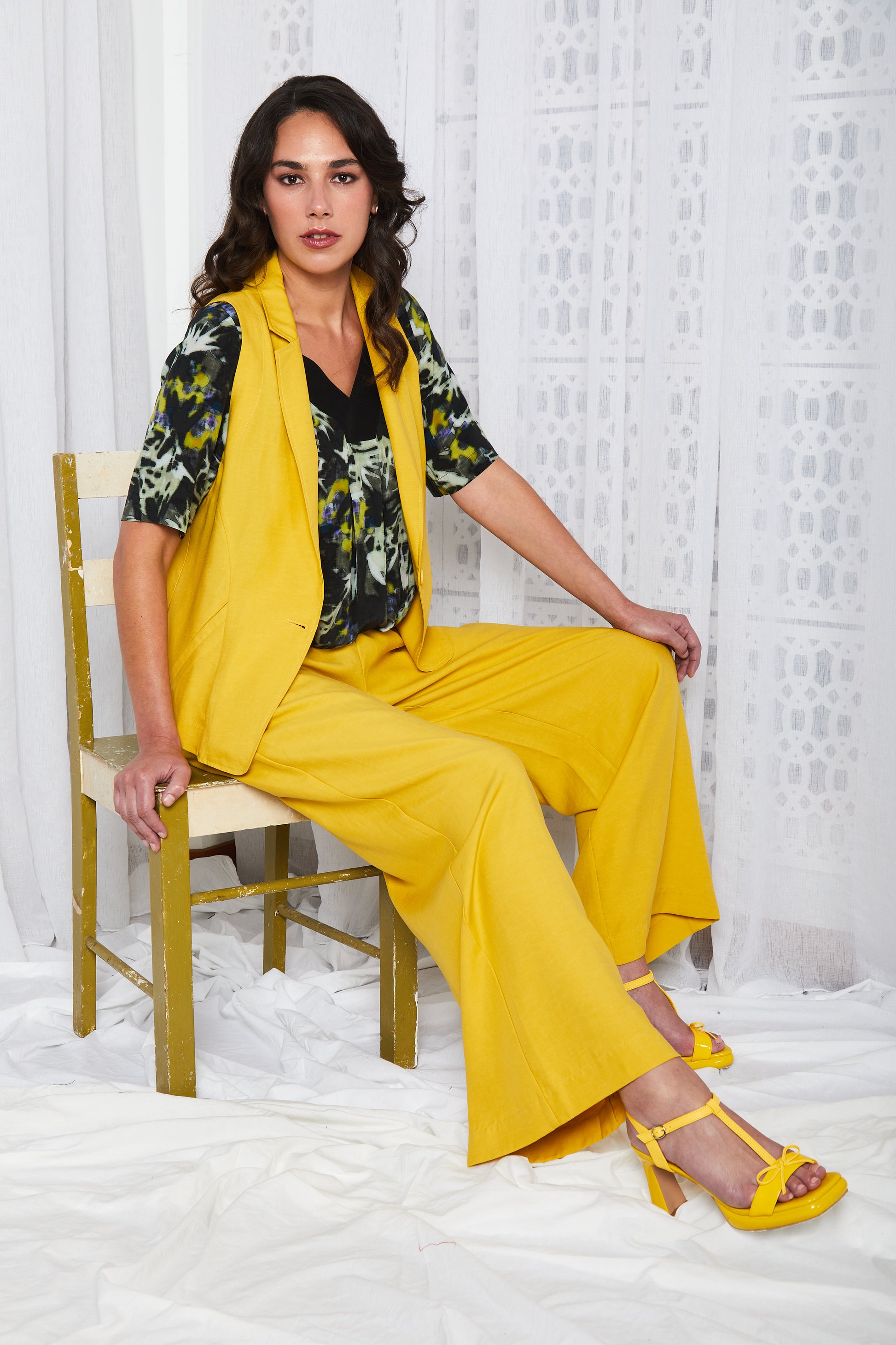 This piece brings sharp lines with thoughtful polished detail, an elevated layer that balances ease and edge, pairs beautifully with the Soprano Pleat Palazzo for a modern take on soft suiting.
