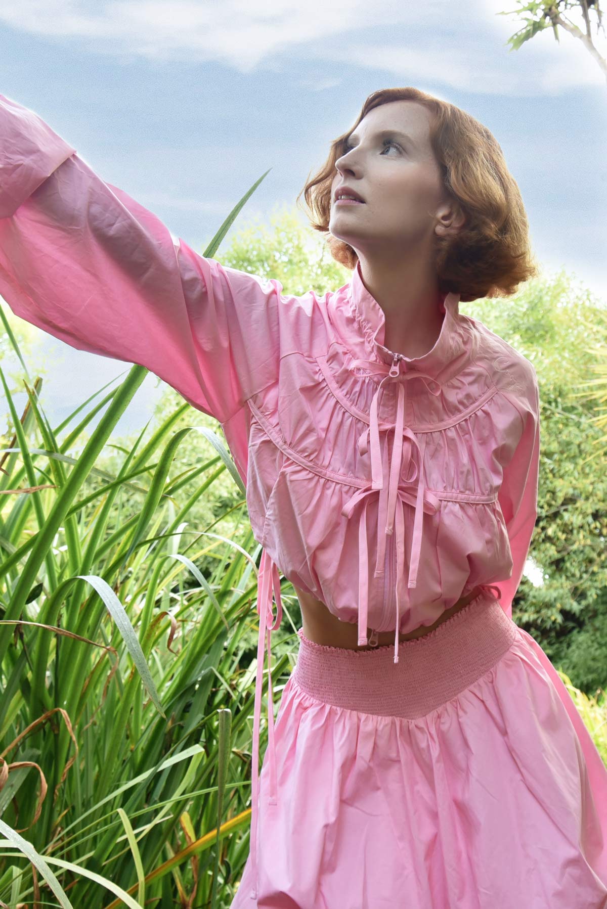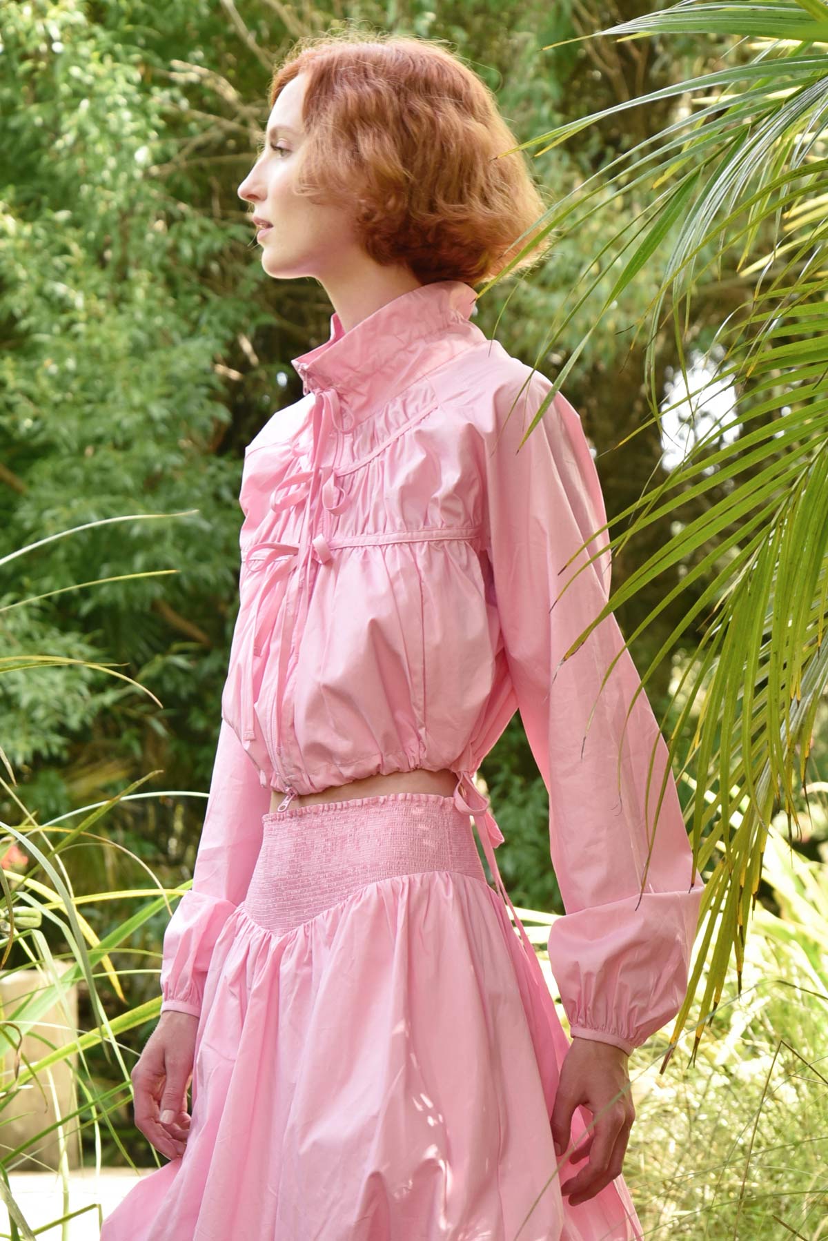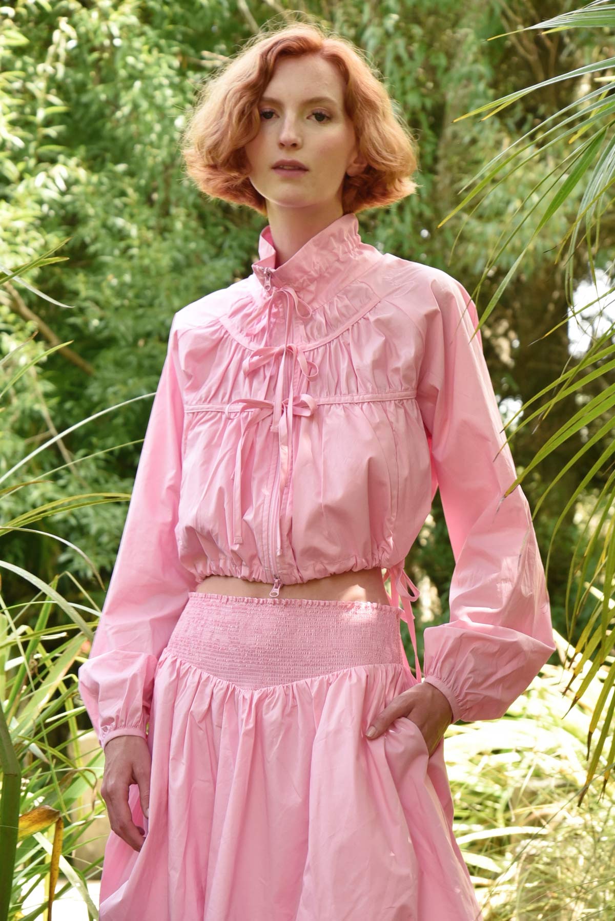 Promoting sportluxe, the ‘Time & Tied’ jacket grants a lightweight layer perfect for the transitional seasons. Crafted in the lightweight ‘Looking Polished’ cotton, this layering hero boasts a ruched front complete with drawstring ties, a zip through front and gathered sleeves. Pair with the ‘Bubble Mix’ skirt for a playful two piece.