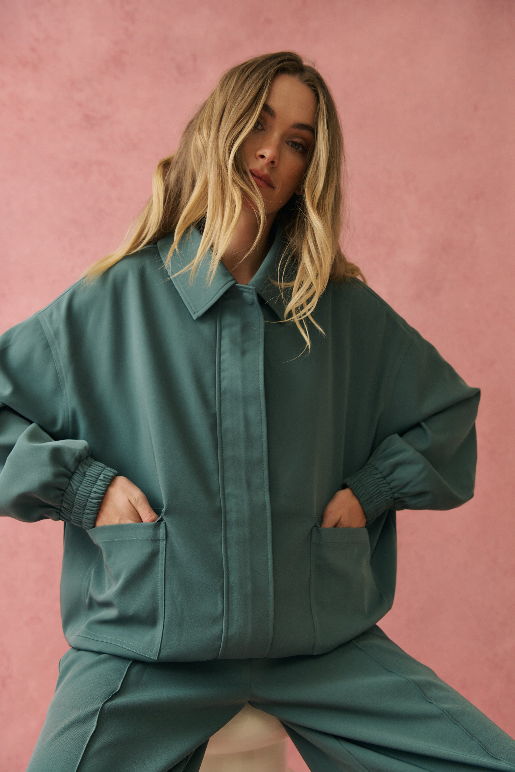 - Oversized bomber inspired jacket